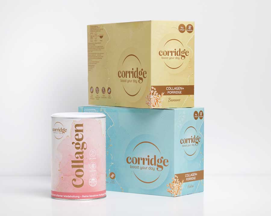 Mother-daughter start-up from Lake Constance Corridge is the first high protein porridge with collagen No added sugar, flavourings or additives – 100% clean label Our product is the first porridge with LIAF-certified collagen